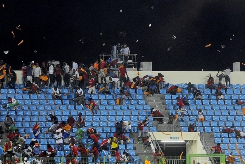 Stampedes at a football match killed 56 people in Guinea's second-largest city of N'Zerekore, the junta-controlled government said Monday. "Protests of dissatisfaction with refereeing decisions led to stone-throwing by supporters, resulting in fatal stampedes" at Sunday's match, the government statement said, which was published as a news ticker on national television.
