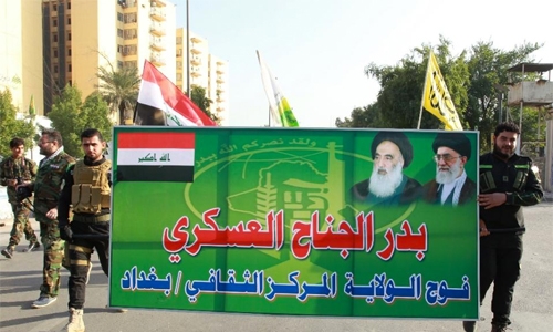 Photo Caption: Iraqi members of the Tehran-backed Shiite Badr militia take part in a demonstration in Baghdad's Tahrir Square on December 12, 2015 (AFP Photo/Sabah Arar)