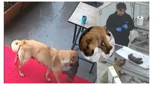 In a heartwarming display of maternal love, a mother dog in Istanbul carried her unconscious and hypothermic puppy to a veterinary clinic, seeking urgent help. The puppy had been found in a dire state, struggling with severe cold, but the mother’s determination led her to the clinic where the concerned staff immediately sprang into action.