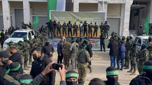 Dozens of Hamas fighters gather at key Gaza square for hostage handover