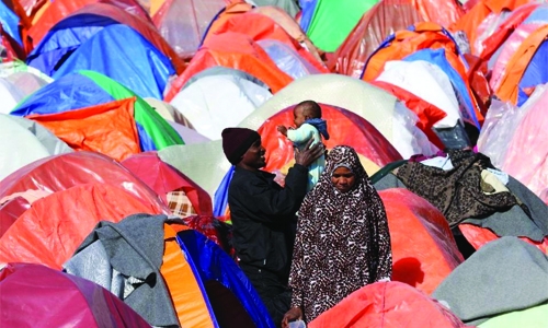 Photo Caption: Sudanese refugees from Darfur stand amid tents as they gather during an open-ended sit-in outside the United Nations High Commissioner for Refugees (UNHCR) in the Jordanian capital Amman on December 12, 2015 (AFP Photo/Khalil Mazraawi)