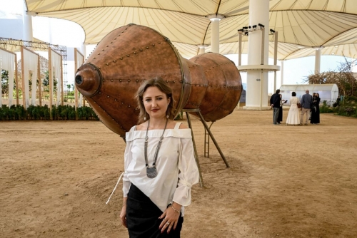 Kalo told AFP her installation, made out of copper, sought to raise the question of “what it means to see and what it means to be a witness”. The exhibition has also encouraged artists to be bold with scale, as can be seen from a massive disc covered in petrol -- a nod to Saudi Arabia’s position as the world’s leading crude exporter -- that spins endlessly.