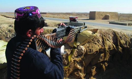 Photo Caption: Afghan police keep watch during an ongoing battle with Taliban militants in the Marjah district of Helmand Province, on December 23, 2015 (AFP Photo/Noor Mohammad)