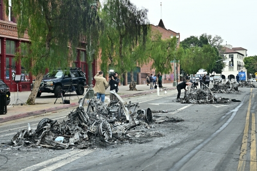 "BRING IN THE TROOPS!!!!" he wrote on his Truth Social platform. At least three self-driving Waymo cars were torched Sunday, and local law enforcement deployed tear gas and smoke grenades to disperse protesters.