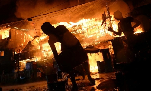 Panicked and weeping residents fled their burning homes carrying clothes and furniture while men, many of whom were drunk from a night of merrymaking, desperately tried to put out the fire with buckets of water, an AFP photographer at the scene saw.