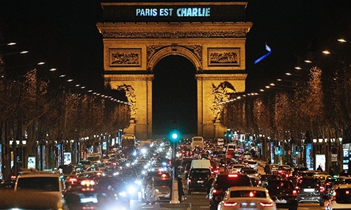 Photo: The slogan 'Paris est Charlie' ('Paris is Charlie') is projected onto the Arc de Triomphe in Paris on January 9, 2015, in tribute to the victims of a deadly attack on the headquarters of French satirical weekly Charlie Hebdo (Yahoo)