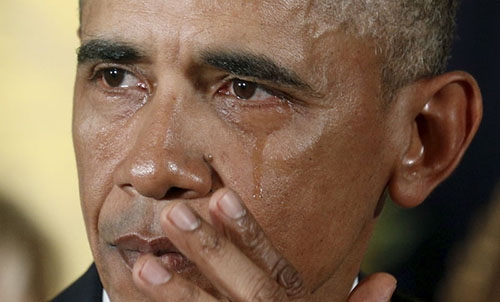 Photo: US President Barack Obama wipes a tear while talking about Newtown and other mass killings during an event held to announce new gun control measures. (channelnewsasia.com)