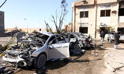 Photo: People gather at the site of a suicide truck bombing on a police school in the coastal Libyan city of Zliten (Yahoo)