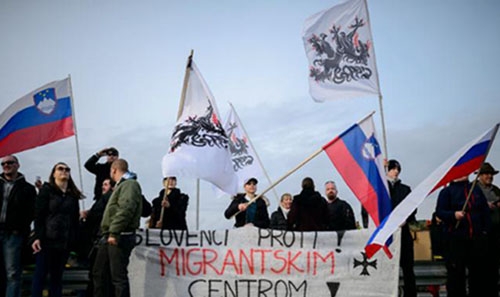 Around 3,000 protesters, according to state Radio Slovenija, waved Slovenian flags and banners with slogans such as "Migrants' centre: no thanks!" and "The duty of all patriots is defend the country from this government".