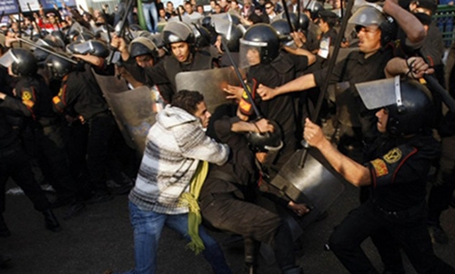 Cairo: Police fired tear gas at stone-throwing protesters as around 50 anti-government demonstrators gathered in a square of Egypt's capital Monday in defiance of an official ban, an AFP journalist said.