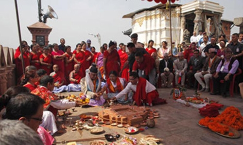 Kathmandu: Nepal's prime minister joined Buddhist monks at a prayer ceremony Monday to mark the start of rebuilding of five ancient monuments destroyed in an earthquake that killed thousands and devastated the country's rich cultural heritage.