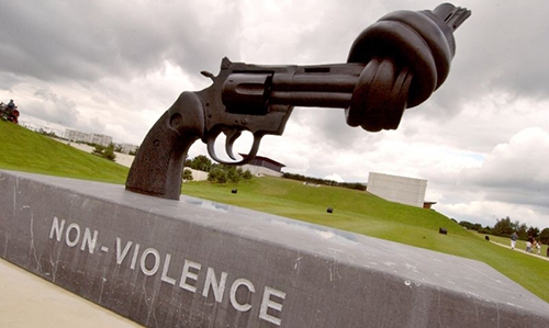 Reutersward designed the oversized bronze Colt Magnum .357 with the knotted barrel, entitled "Non Violence", as a symbol of peace after the assassination of his friend John Lennon, the former Beatle, who was shot dead by Mark Chapman on December 8, 1980.