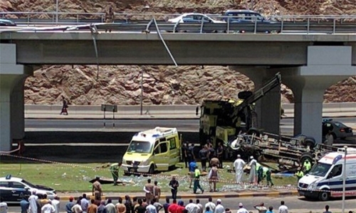 "The Omani truck driver and an expatriate working on the road under the bridge died in the accident. The truck fell on the worker. One person has been admitted to the hospital with serious injuries," the police added.