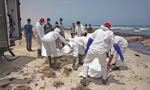 Athens : The bodies of more than 100 migrants have washed up on a Libyan beach as a new migrant boat tragedy unfolded in the Mediterranean south of Greece yesterday.