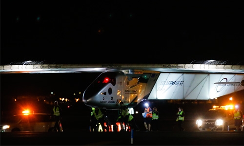New York : The Solar Impulse 2 aircraft landed in New York early Saturday, after flying by the Statue of Liberty at the end of the US portion of its bid to circle the globe using only solar power.