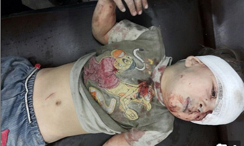 The horror and tragedy of the war in Syria has been captured in a single photograph of a wounded child.