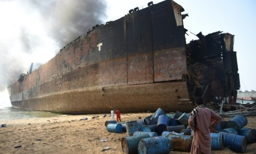 More than 50 others were wounded in the incident when a gas cylinder exploded and started a fire inside an oil tanker at the Gadani yard in the southwestern province of Balochistan.