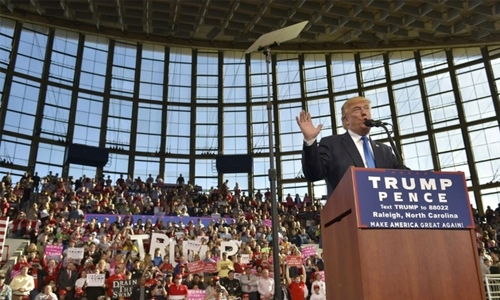 "Our failed political establishment has delivered nothing but poverty, nothing but problems, nothing but losses," he told 5,000 people in Raleigh, North Carolina, reducing the essence of his long and controversial campaign into a handful of soundbites.