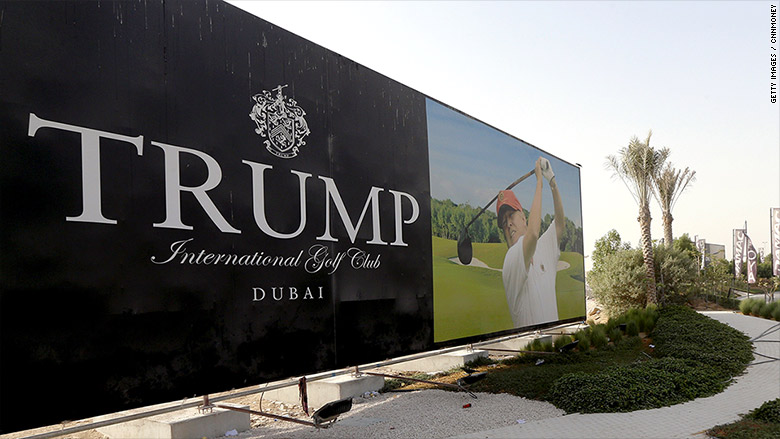 In Dubai, boards displaying the President-elect's name and his support for a DAMAC project to build a gated community, spa and Trump-branded golf course can be seen from a road on the edge of the city.