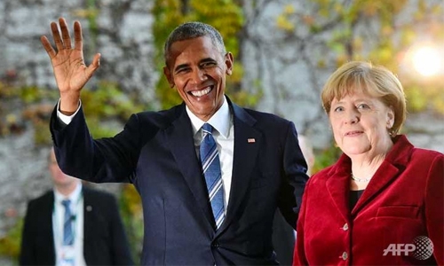 Speaking in Berlin, Obama also praised as an "outstanding" international partner his host Angela Merkel, seen by many as a new standard bearer of liberal democracy as the world tensely awaits how Trump will reshape the global order.