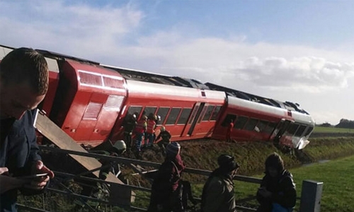 The Hague : Several people were hurt Friday when a train partly derailed after smashing into a milk tanker in the northeastern Netherlands, police said.