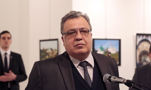 Istanbul : A Turkish policeman crying “Aleppo” and “revenge” shot dead Russia’s ambassador to Turkey at an art exhibition in Ankara yesterday, in what Moscow said was a “terrorist act”.