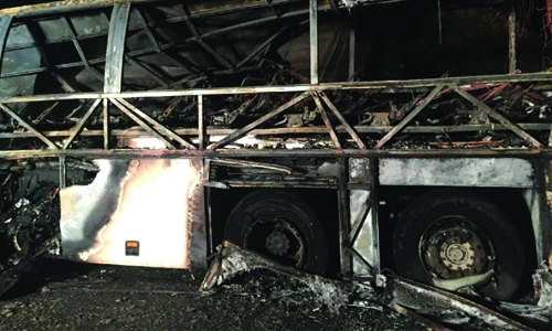 Some were killed when they were thrown from the coach as it hit the pillar around 11:00 pm (2200 GMT) on Friday, but most were found badly charred inside the vehicle.