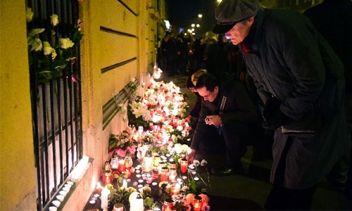 Late on Saturday, several hundred people gathered outside Budapest's Pal Szinyei-Merse secondary school in freezing temperatures to silently pay their respects as scores of tiny candle flames flickered.