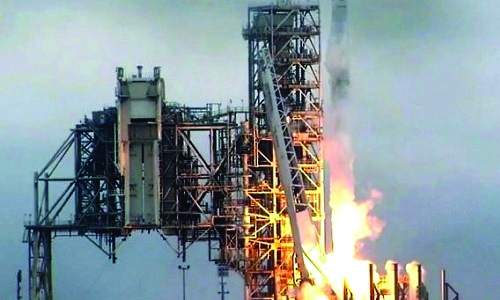 "At five million pounds of liftoff thrust, Falcon Heavy is two-thirds the thrust of Saturn V and more than double the thrust of the next largest launch vehicle currently flying."