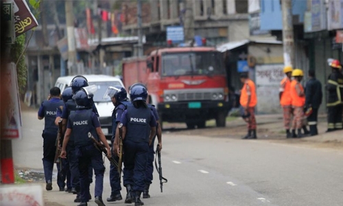 Police raided the house in the northern town of Shibganj late Wednesday on a tip-off that extremists were hiding out there, triggering a tense standoff that ended with explosions and gunfire late Thursday.