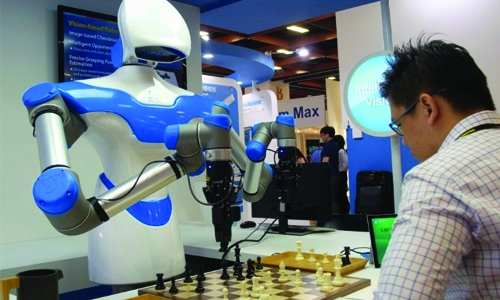 "It can recognise the shape of a small chess pawn, notify its brain, execute AI movements and interact with its opponent," said division director Lewis Liu of the Industrial Technology Research Institute of Taiwan, which built the robot.