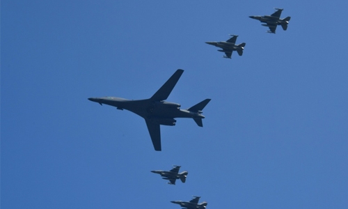 After the drill, the B-1B Lancers, deployed from the Anderson Air Base in Guam, flew close to the tense and heavily militarised land border with the North before turning back, the Yonhap news agency reported.