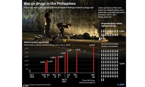 Duterte won the presidency last year promising to kill tens of thousands of criminals to prevent the Philippines from becoming a narco-state.