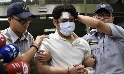 The Taiwanese man who was arrested at the scene said he was expressing his political views and had stolen the sword from a nearby history museum, police told AFP.