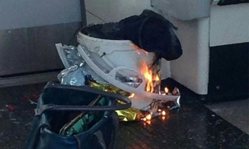 Twitter user @Rrigs posted pictures of a white bucket smouldering on the train and described how a "fireball flew down carriage and we just jumped out open door".