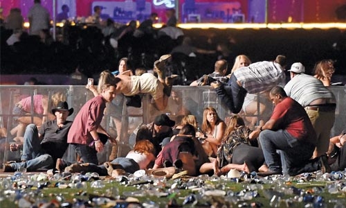 Las Vegas : At least 58 people were killed and 500 injured when a heavily armed “lone wolf” gunman opened fire from a 32-floor hotel room on an open-air concert on the Las Vegas Strip in the deadliest mass shooting in US history.
