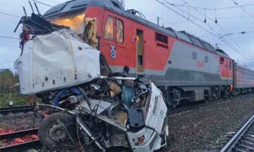 Moscow : A crowded bus was sliced in two by a speeding train after stalling on a level crossing, killing at least 21 people, including three children.