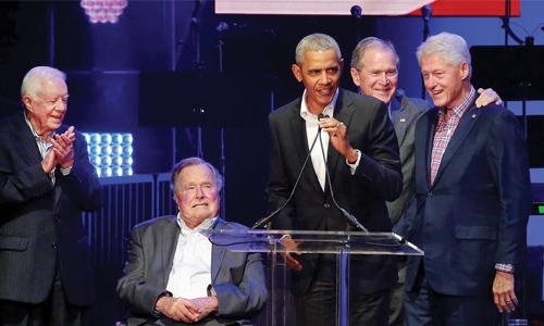 Democrats Barack Obama, Bill Clinton and Jimmy Carter and Republicans George H.W. and George W. Bush gathered in College Station, home of Texas A&M University, to try to unite the country after the storms.