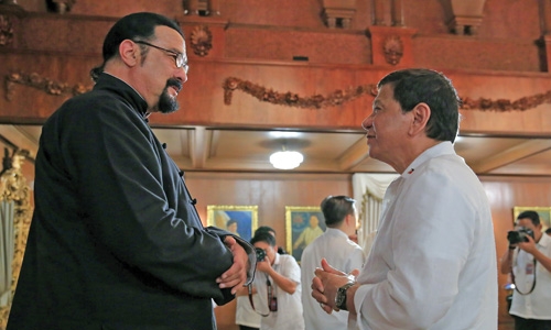 Manila : Philippine President Rodrigo Duterte brought in a special guest yesterday to rally troops battling Islamic State followers in the south -- US action hero Steven Seagal.