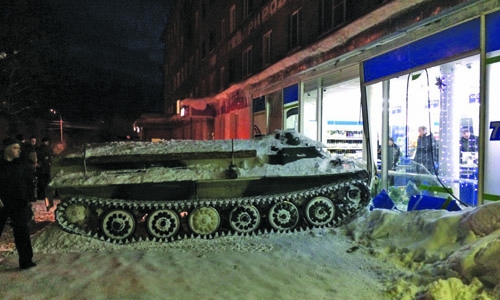 Moscow : A Russian man believed to be drunk has been detained after stealing an armoured personnel carrier and smashing it into a supermarket.