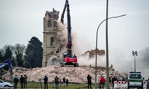 The double-spired church, thought to have been built between 1880 and 1890, was torn down in the latest step in energy company RWE’s demolition of the entire village in a bid to expand its access to the region’s lignite supply.