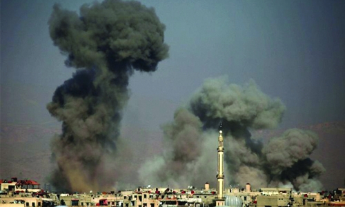 Douma : Fresh air strikes hit the Syrian rebel enclave of Eastern Ghouta yesterday, the fifth straight day of a bombing campaign that has killed more than 220 civilians.
