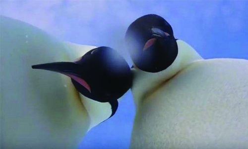 While the video at first captures a handful of penguins from a low vantage point, one bird soon waddles over to the camera and – with a single impressive kick – angles the screen to focus only on its face. (The Washington Post)