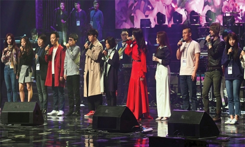 The 120-member group -- 11 musical acts as well as dancers, technicians and martial artists -- are giving a concert on Sunday and another on Tuesday.