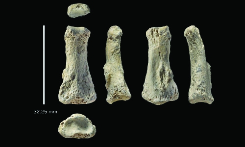 The bone, just 3.2 centimetres (1.6 inches) long, is thought to be the middle bone of a middle finger, likely of an adult. It was discovered in the Nefud Desert of Saudi Arabia in 2016, and analysed over two years.