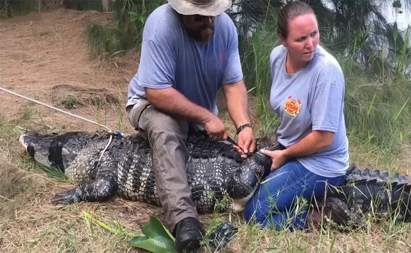 Police in Florida found a human arm inside a 12-foot long alligator in Florida after a woman walking her dogs went missing, likely attacked and killed by the reptile. Linda So reports. A human arm was found inside this 12-foot alligator that police believe attacked and killed a woman walking her dogs. Divers are still searching for 47-year-old Shi-zuka Matsuki who went missing Friday morning near this lake in Davie, Florida, a suburb of Miami. A witness says he saw the woman walking her two dogs and later saw the dogs barking near the water, but did not see the woman again. It took authorities more than 5 hours to capture the reptile. The most recent attack happened two years ago when a 2-year-old boy was playing near the water at a Walt Disney World resort was killed.