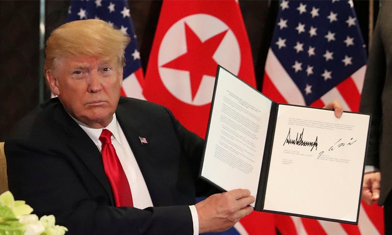 Kim Jong Un’s distinctive signature, penned on a historic agreement with US President Donald Trump yesterday, indicates his ambition and creativity, handwriting experts said. Trump’s signature, by contrast, indicates a more guarded personality, they said. Graphologist Koo Bon-jin said Kim’s signature suggested an ambitious man who is “intuitive, rather than rational and logical”. “He also writes very fast, which indicates he’s quick-witted and impatient,” Koo added. Kim’s signature contrasts with Trump’s angular, closely packed autograph, said Karen Leong, a body language expert and director of Singapore-based consultants Influence Solutions. “There is tremendous space between each character, which indicates a creative individual who is open to taking on new ideas, to evolving,” Leong said of Kim’s signature. “It indicates a confident person with big dreams and ambitions.” Trump’s signature, which Leong said looked like “arrows or skyscrapers”, points to people who “tend to wear a mask to hide their true nature”. “While both signatures are very different, as both men really have different personalities, both in their own way want to make their mark,” she added. Ahn Chan-il, a former North Korean military officer who heads the World Institute for North Korea Studies in Seoul, said Kim’s slanting signature was similar to those of his father and grandfather.