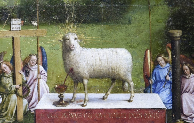 Restorers from Belgium’s Royal Institute for Cultural Heritage began working on the altarpiece in 2012, but in recent months focused on removing the over-painting from the central part of the work which includes the head of the lamb.