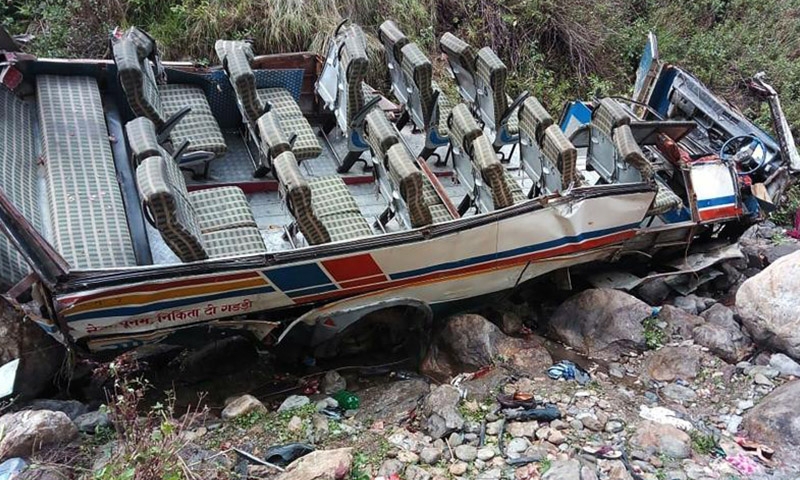 Forty eight people were killed and eleven injured when an overcrowded bus spun off a slippery road and fell into a deep ravine in the northern Indian state of Uttarakhand yesterday, police said. “It was a 28-seater bus but was carrying 59 passengers,” said a police official at the office of senior superintendent of police from the local area called Pauri where the accident took place. He declined to be identified since he was not authorized to speak to the media. Rescue operations are complete and police are trying to get the dead bodies identified by relatives and friends, the police official said. Prime Minister Narendra Modi tweeted saying he was “extremely saddened by the bus accident in Pauri Garhwal.”