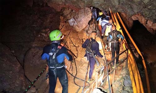 Bangkok : Divers and rescue workers have begun operation to free four boys and their soccer coach still trapped in cave in Thailand, according to a Thai Navy official with knowledge of the operational details. Eight of the boys were taken out of the cave during the first two days of rescue operations, but five others remain trapped.